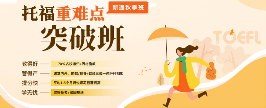 3、托福强化班,通过专项训练/真题精讲/模考训练/预测帮助托福单项强化班单项基础薄弱,希望短时间提升强化的学员。考生短时间内单项提高,达到目标分数